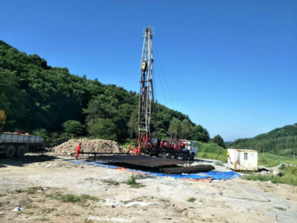 圖片新聞:公司院內(nèi)的地熱試驗一井,下套管施工(2017年史文全報道)